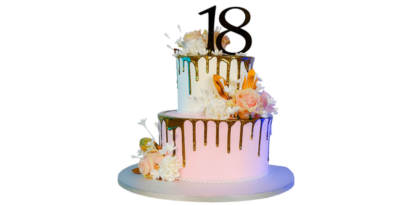 Tarta para mujeres decorada con nata rosay blanca, drip dorado, flores naturales y de fondant
